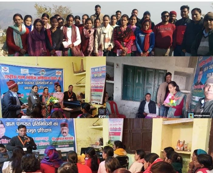 पंचायती राज विभाग उत्तराखंड के द्वारा पंचायती राज प्रशिक्षण राष्ट्रीय ग्राम स्वराज अभियान वर्ष 2025 26 का शुभारंभ दिनांक 27/12/2025 से विकास खंड लमगड़ा के न्याय पंचायत चौखुरी के पंचायत सुनाड़ी व न्याय पंचायत पुभाऊं के पंचायत घर पुभाऊं में दोनों न्याय पंचायतों के अलग अलग स्थानों पर क्षेत्र के सभी ग्राम प्रधानों व वार्ड सदस्यों के 5 दिवसीय क्षमता विकास प्रशिक्षण का प्रारंभ पंचायती राज विभाग से प्रशिक्षित प्रशिक्षकों द्वारा प्रशिक्षण प्रारंभ किया गया है।