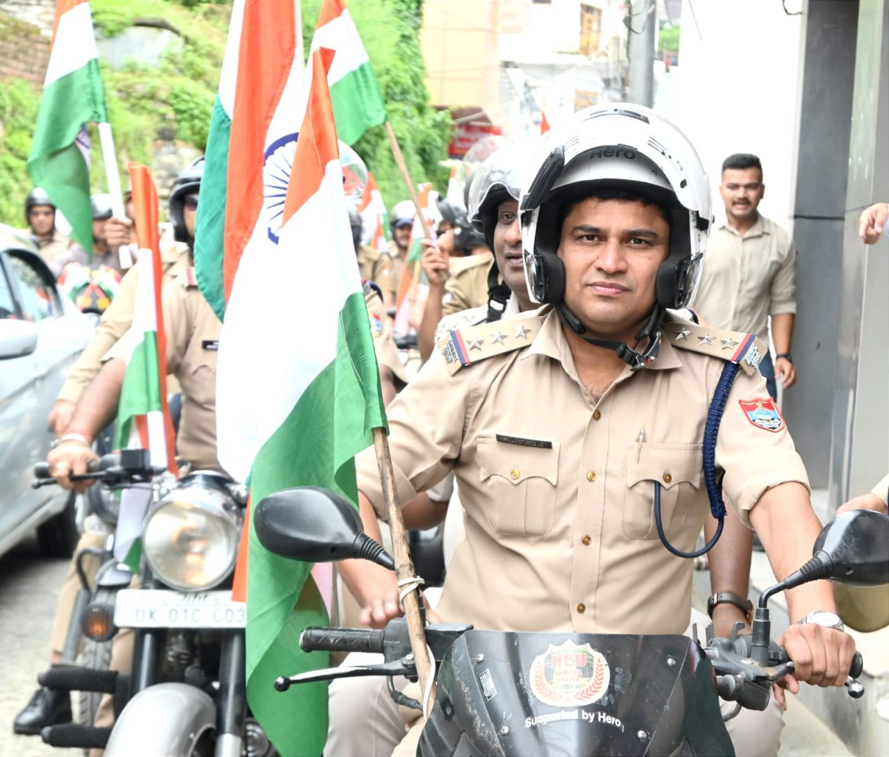 एसएसपी अल्मोड़ा द्वारा तिरंगा बाईक रैली को पुलिस कार्यालय अल्मोड़ा से हरी झण्डी दिखाकर रवाना किया गया। तिरंगा बाईक रैली नगर के मॉल रोड शिखर तिराहे से होकर लक्ष्मेश्वर, पाण्डेखोला बाईपास से लोअर माल रोड बेस तिराहा करबला होते हुए रघुनाथ सिटी मॉल पर सम्पन्न हुई। बाईक रैली के दौरान अल्मोड़ा पुलिस के जवानों द्वारा जोश व देश प्रेम के जज्बे के साथ भारत माता के जयकारे के नारे लगाकर शहर को गुंजायमान किया। तिरंगा बाईक रैली के दौरान जनमानस को अपने घरों/प्रतिष्ठानों में राष्ट्र ध्वज तिरंगा को सम्मानपूर्वक फहराने व देश के बहादुर स्वतंत्रता सेनानियों और वीरों का सम्मान करने के लिए प्रेरित किया गया।