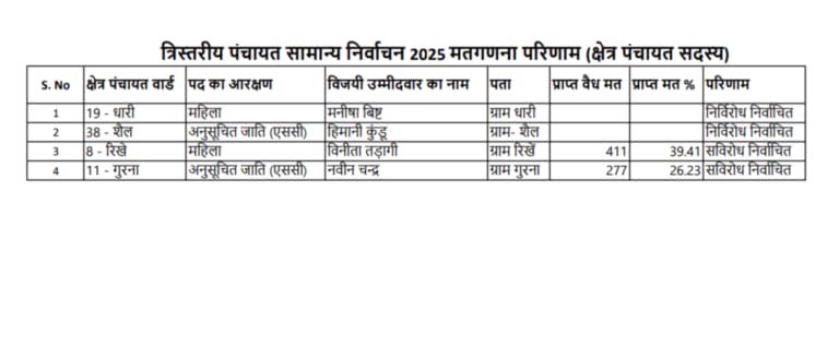 Almora, Post दूसरे राउंड की काउंटिंग के बाद हवालबाग ब्लॉक के चुनाव परिणाम Smriti TewariJuly 31, 2025July 31, 2025 दूसरे राउंड की काउंटिंग के बाद हवालबाग ब्लॉक के चुनाव परिणाम दूसरे राउंड की काउंटिंग के बाद हवालबाग ब्लॉक में कितने प्रधान और कितने क्षेत्र पंचायत सदस्य प्रत्याशियों का परिणाम घोषित हो गया है। देखें परिणाम Share this:FacebookX Related