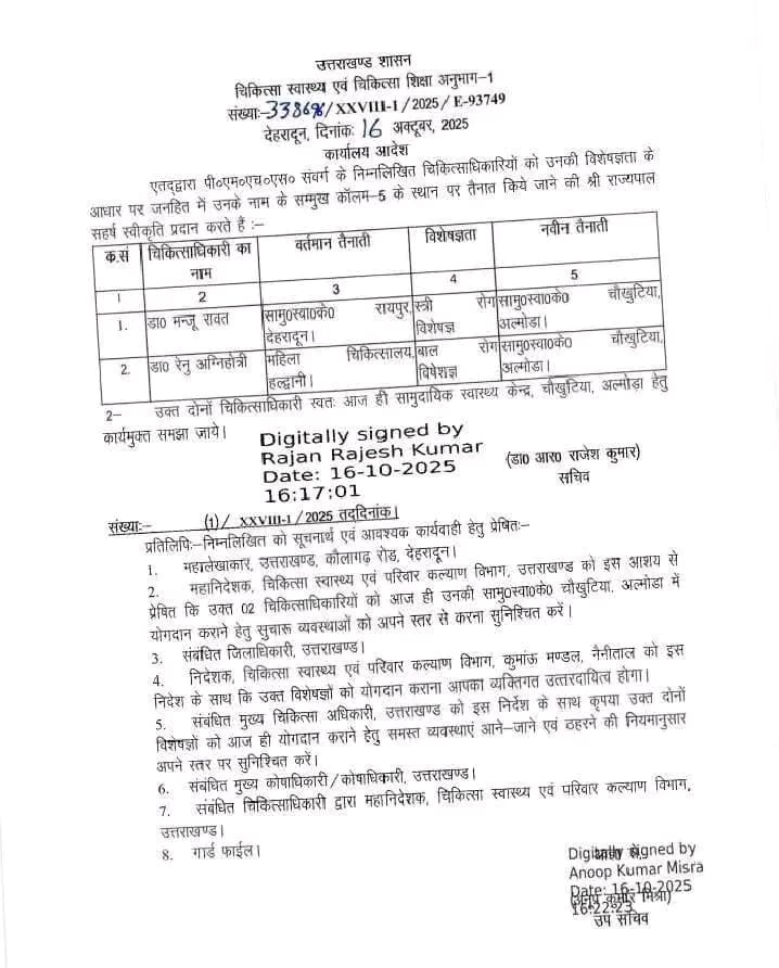 राजनीति भी क्या चीज है, यह किससे क्या-क्या न करवा लेती है। जिस चौखुटिया अस्पताल में डॉक्टरों की तैनाती को लेकर राजनीतिक पार्टियों द्वारा हंगामा मचाया जा रहा था, उसी अस्पताल के लिए डॉक्टरों की नियुक्ति के आदेश शासन द्वारा 16 अक्टूबर 2025 को ही जारी कर दिए गए थे।